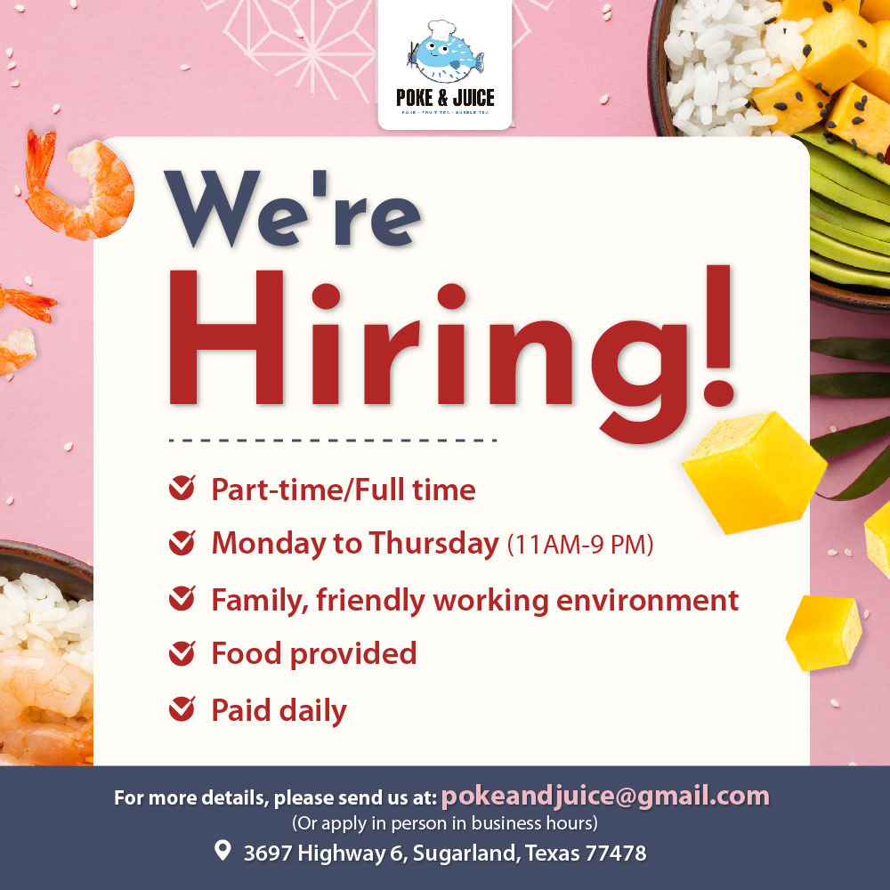 We’re looking for motivated individuals to join us in Poke & Juice restaurant.